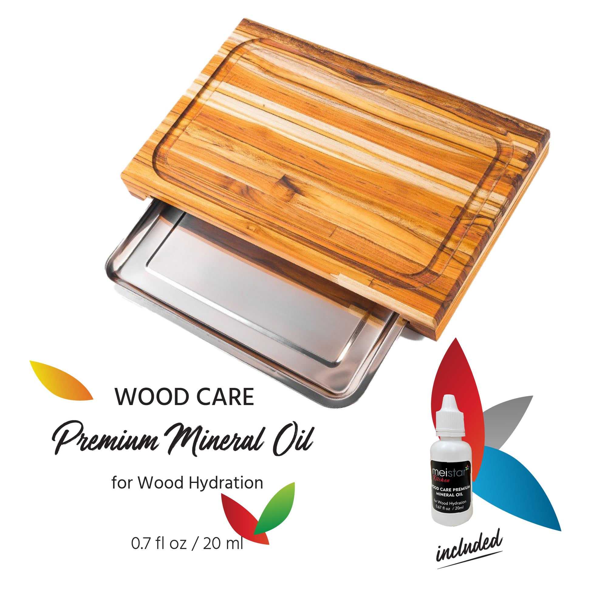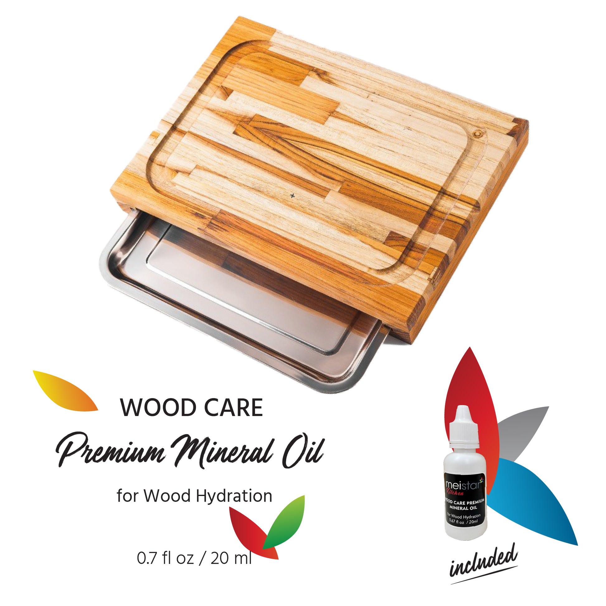 - Bonus Mineral Oil 100% Pure: The amazing wooden cutting board comes with an 0.67 Fl oz (20ml) bottle of premium mineral oil for wood hydration and care. Use it occasionally to restore and protect the surface of your board.