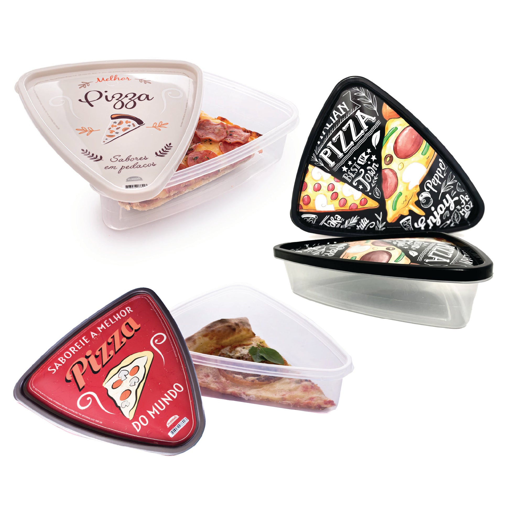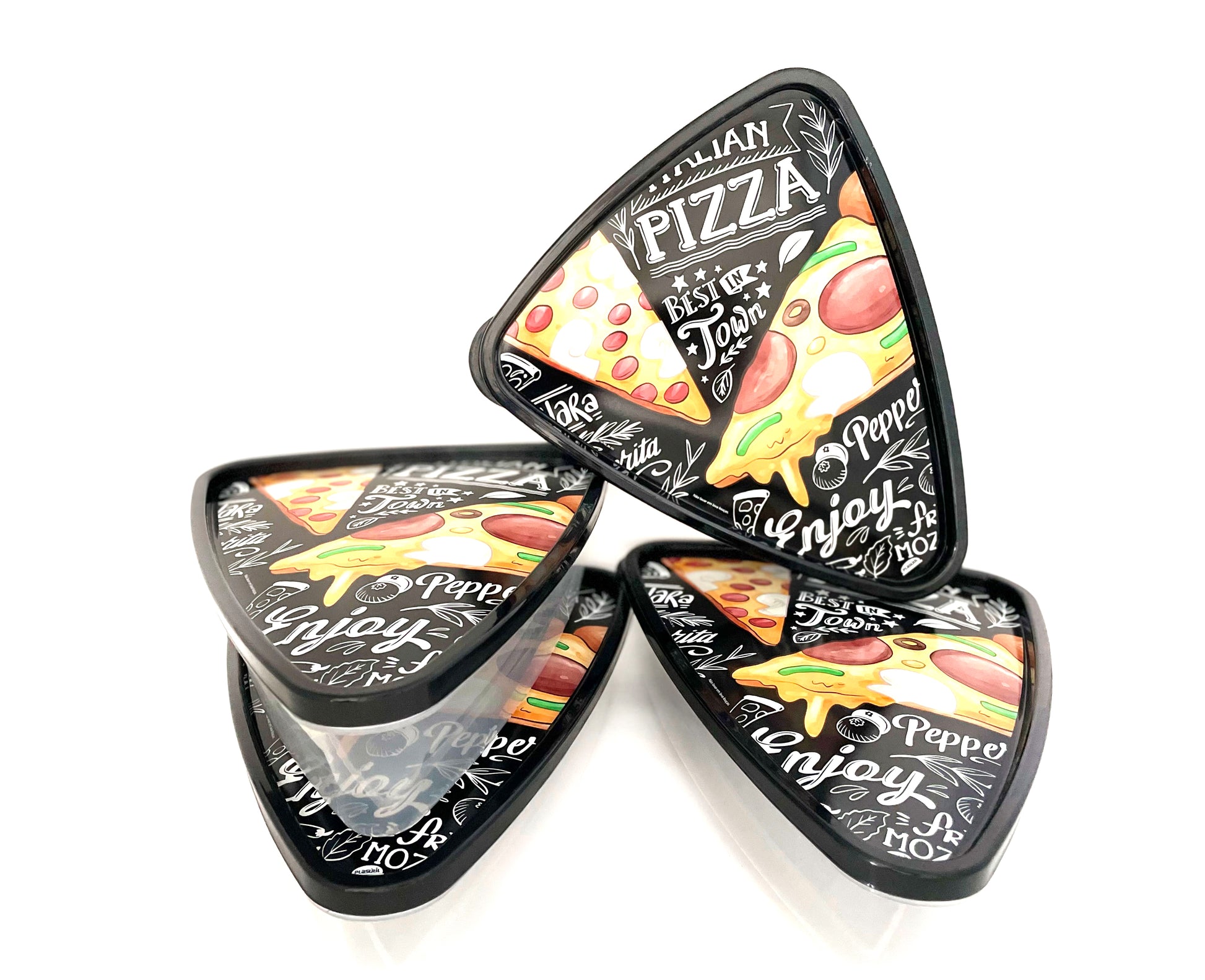 Pizza Slice Plastic Container Storage with Lids. Tray, Holder and Saver. Plastic Packs to go