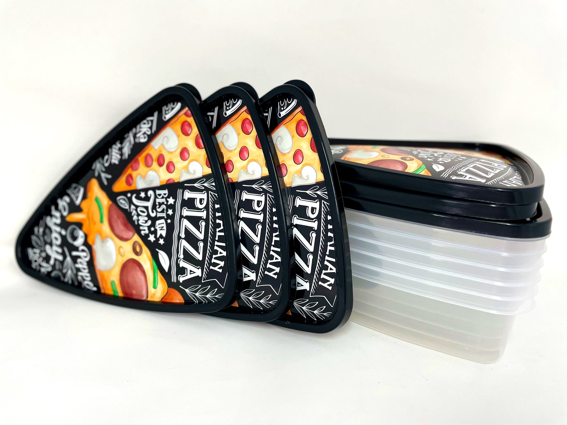 - š 4/ 6 PIECE CONTAINER SET ā a set of 4/ 6 stackable plastic containers with lid for pizza slices. The best way to keep leftover slices of your pizza!