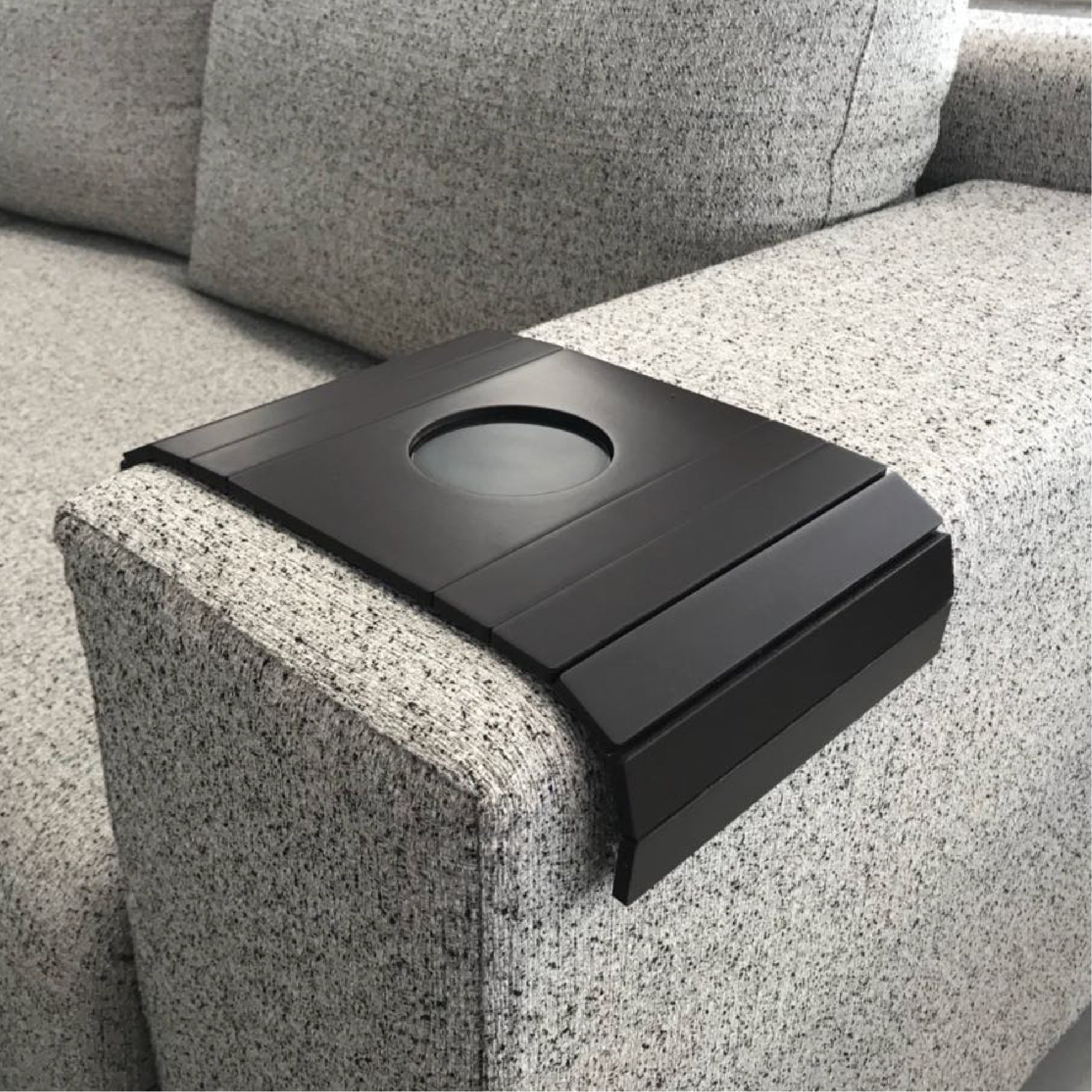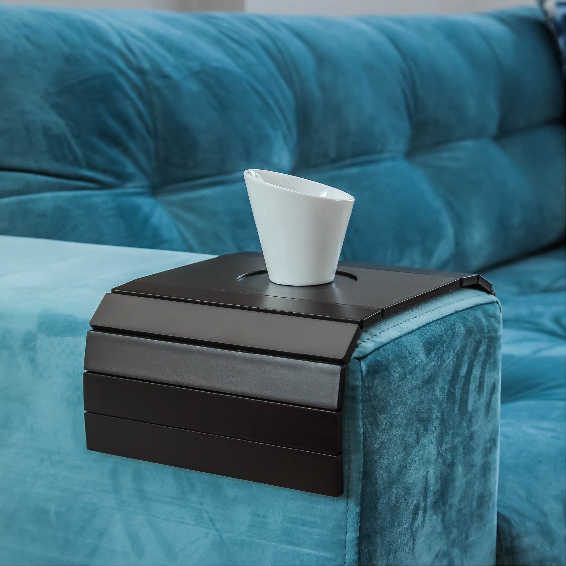Sofa Couch Tray Table with Cup Holder. Fits Over Square Chair arms