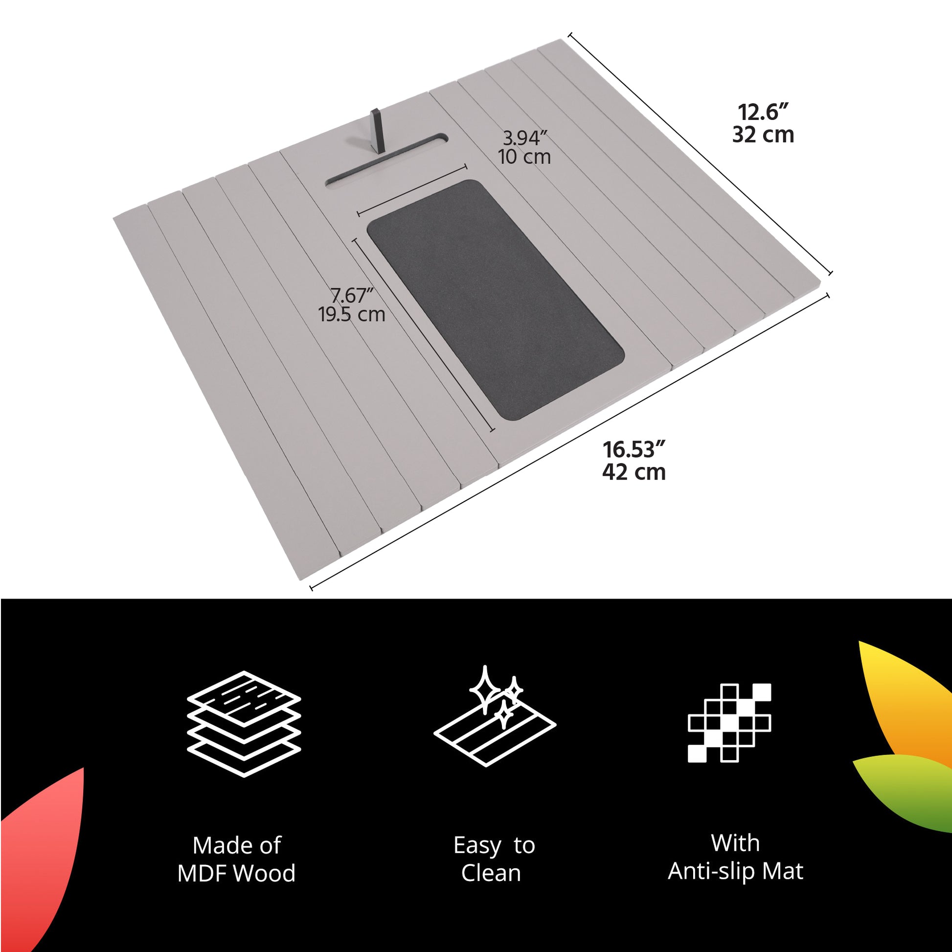 - More Space for Your Beverages - Besides holding your gadgets, our modern MDF couch arm shelf is spacious enough for your favorite hot or cold drinks. Excellent on square chair sofa arms, this sofa armrest tray measures 15.7 x 12.6 x 0.23 inches. (40 x 32 x 0.6 cm.)
